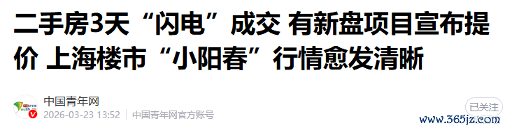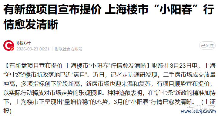 吃饭时刷到一则权威媒体的楼市报道,标题很直白:《二手房3天“闪电”成交 有新盘项目宣布提价 上海楼市“小阳春”行情愈发清晰》。读完很有感触,今年楼市的热度,确实和往年不太一样,不再是短暂的季节性回暖,而是带着明显趋势性的变化。